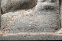 A szöveg tehát két férfi sírfelirata. Nevük tanúsága szerint egyikük, Aulos Granios (latinos formában Aulus Granius) Antiochos római polgárjoggal rendelkező görög. A másikról csupán annyit lehet biztosan megállapítani, hogy nevét az Egyiptomot uraló görög Ptolemaios-dinasztiáról kapta, és a nyolc Laodikeia nevű város egyikéből származik (legnagyobbikuk a nevet máig megőrző szíriai Latakia). A laodikeiai Ptolemaios tehát messziről érkezhetett Hellasba. Nem tudni, milyen viszony fűzte Aulos Granios Antiochoshoz; talán a rabszolgája volt. A felirat harmadik sorában a szokásos búcsúformula olvasható (chairete, kb. minden jót!), amellyel a hozzátartozók végső búcsút vettek szeretteiktől (chréstoi).