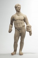 A Battonyán 1996-ban lefoglalt együttes egy terrakotta ifjúszobrot is tartalmazott. Hellénisztikus kori eredetiként a műkereskedelemben jó áron eladható darab lenne. Kialakítása alapján azonban egyértelmű, hogy hamisítványról van szó. A bal csuklón összecsavart köpeny és a lábak alatt lévő két külön talapzat nem jellemző ókori alkotásokra. Szintén árulkodó jel, hogy az ifjú jobb kezében tartott markolat teteje nem töredékes, hanem csonknak készült. A darab nagyon hasonlít egy híres görög márványszoborra, amely Agiast, az Kr. e. 5. század híres atlétáját ábrázolja, és amelyet Agias egy késői leszármazottja állíttatott fel a delphoi Apollón-szentélyben. A battonyai ifjú készítéséhez ennek a márványszobornak az elöl- és hátulnézeti képe adhatott mintát. Az ifjúszobor ugyanis ebben a két nézetben viszonylag jól kidolgozott, pontosan követi feltételezett előképét, az oldalnézetnél azonban sem a test vastagsága, sem a kialakítása nem megfelelő. Mindezek alapján kezdő hamisítóműhely termékéről lehet szó.