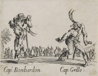 groteszk ábrázolásnak azonban a névadástól függetlenül is lényegében folyamatos volt a hagyománya az európai kultúrában az ókortól legalább a reneszánsz végéig. Így Wenzel Hollar (1607-1677) kiállított, Leonardo da Vinci rajza után készült rézkarcának portréi (5) ugyanúgy mutatják az említett túlhangsúlyozott vonásokat, mint a hellénisztikus terrakották. Jacques Callot francia grafikusművész (1592-1635) rézkarc-sorozatának képein (6) pedig a karneváli, vásári világ elevenedik meg, amely a bahtyini groteszk legfontosabb közege. A háttérben álló vásári sokaság előtt szereplő, mutatványosokból álló párosok a sfessania nevű, eredetileg a keresztények és mórok harcát szimbolizáló táncot mutatják be.