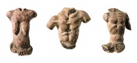 A kiállításban szereplő vénasszonyalak (8) még ruháját is felhúzza; a feltáruló test az öregség helyett sokkal inkább a termékenység szimbóluma. Az ókortudomány sokféleképpen próbálta magyarázni ezeket a tárgyakat. Vajon miért is készíthettek szobrokat csúnya emberi testekről? Miért nem volt jó az idealizált szépség, amelyet éppen a görögök alkottak meg? Kinek volt szüksége nyomorékok, betegek, törpék szobrára? Egy elmélet szerint a testi torzulások ábrázolásai (9-11) oktatási segédeszközök voltak orvosok tanításához; mások szerint betegek fogadalmi ajándékaival van dolgunk. A törpék, nyomorékok egy része láthatóan táncol, ami lehet a nagyváros életének realista ábrázolása (utcai szórakoztatók, koldusok), vagy éppen valamilyen ünnephez, rítushoz, tehát a kultusz szférájához is kapcsolhatja őket - erre utalhat a fejükön a koszorú is (12-13).
