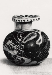| Hol található? | Szépmûvészeti Múzeum, Antik Gyûjtemény | | Méret: | m: 7,1 cm | | Állapot: | A fül kiegészítés. A testen több helyen zúzódás. | | Katalógus szám: | Hu-SzM-Ant-50.787 |