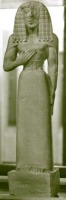 A mítosz szerint művészi féltékenységből unokaöccsét, Talost letaszította az Akropolisról, majd pedig Krétára menekült. Itt híres művek elkészítése fűződik a nevéhez. Táncteret készített Ariadné számára, fából tehenet Minós feleségének, Pasiphaé királynénak, labyrinthost épített a Minótauros számára, aki Pasiphaé királyné félig bika, félig emberi gyermeke volt. A mítosz szerint a királyné beleszeretett egy bikába, és hogy a bika iránti szenvedélyét csillapíthassa, Daidalos elkészítette neki a tehenet, amibe belebújhatott. Minós, Kréta királya ez utóbbi mű miatt vagy mert segédkezett a Minótauros megölésében azzal, hogy ő adta a Théseust megmentő fonalat Ariadnénak, az általa épített labyrinthosba záratta. Innen csak úgy tudott elmenekülni, hogy tollakból és viaszból szárnyakat készített magának és fiának, Ikarosnak. Miközben azonban az égbolton át menekültek, Ikaros túl közel repült a naphoz, megolvadt a tollakat összetartó viasz, a fiú pedig a tengerbe zuhant és meghalt. Daidalos Szicíliába menekült, és ott további műveket alkotott. Daidalost egy, a Kr. e. 7. században kialakult szobrászati stílus feltalálójaként és mestereként is számon tartják, és róla nevezték el daedalikus stílusnak. A stílus jellemzői, hogy a szobrok felépítése az egyiptomi szobrokéhoz hasonló, ám a karok elválnak a testtől, a lábak elválnak egymástól, az alakok szeme pedig jellegzetesen tágra nyitott. A szobrászati újításokon kívül más találmányokat is tulajdonítottak Daidalosnak, pl. a fafaragás, a fűrész, a fejsze és a függőón feltalálását. Valószínűleg azonban arról van itt szó, hogy a hagyomány szívesen kapcsolja egy adott korszak összes vívmányát egy központi alakhoz. Irodalom: H. von Geisau, Der kleine Pauly (1969) 1360-1361. s.v. Daidalos Kerényi K., Görög mitológia, Budapest, 1977. Ritoók Zs.-Sarkadi J.-Szilágyi J.Gy., A görög kultúra aranykora, Budapest, 1984, 126-129. Birkás Éva 2004 |