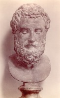 Élete, melyről igen kevés adat maradt fenn, az athéni demokrácia megszilárdulásának és virágzásának idejére esik. Földbirtokos családba született (Kr.e. 525, Eleusis), a perzsa háborúk nagy csatáiban harcolt (Marathónnál, Salamisnál és Plataiainál is). Először Kr.e. 499-ben lépett fel, tragédiaversenyen elért első győzelmére még 15 évet kellett várnia. Többször járt Szicíliában, először I. Hierón tyrannos meghívására, Kr.e. 473-ban, a halál is Szicíliában (Gela városában) érte Kr.e. 456-ban. 90 drámájából 7 maradt ránk teljesen, ebből három egy összefüggő trilógiát alkot. Legkorábbi ránk maradt darabja is már érett alkotó éveire esik. A Perzsákat Kr.e. 472-ben mutatták be. A darabban a salamisi diadalnak állít emléket, az ellenfél bukását Xerxés elbizakodottságára, hybrisére vezeti vissza. A Heten Thébai ellen (bemutatták: Kr.e. 467) egy, a Labdakidák sorsát feldolgozó trilógia egyik darabja volt. A három tragédia egy átokvert család három nemzedékének történetét követi végig, egészen a család kipusztulásáig. A szörnyű csapások mind az erkölcsi törvényeket áthágó ősök jogos büntetéseiként jelennek meg. Szintén elveszett annak a trilógiának másik két darabja, mely a Danaidák történetéről szól, s csak az elsőt, az Oltalomkeresőket vehetjük ma is kezünkbe. Itt az unokatestvéreikhez férjhez menni nem akaró Danaos-lányok Argos városában lelnek oltalmat. A teljes egészében fennmaradt trilógia, az Oresteia az Átreidák családjának bosszútörténete. Az Agamemnón Klytaimnéstra bosszújáról, az Áldozatvivők Orestés és Élektra bosszújáról szól. A bosszúláncolat az Eumenisekben megszakad: Orestést az athéni bíróság felmenti. Ebben a trilógiában, éppúgy, mint a Danaida-trilógiában is, az ellentétektől feszült helyzetet az erők kiegyenlítődése zárja le. A hét fennmaradt dráma egyikének, a Leláncolt Prométheusnak szerzősége vitatott. Zeust itt kíméletlen zsarnokként ábrázolják az emberiséget "túlságosan szerető" Prométheus szavai. Aischylos hősei egyrészt külső kényszer alatt cselekszenek, másrészt tettüket saját választásuk is meghatározza. Legyen bár átok egy történet kiindulópontja, a hősök maguk is előremozdítják beteljesülését. Az emberi szenvedésnek van értelme: belátásra tanít, az igazság végül mindig érvényesül. Szatírdrámáit a műfaj lesikerültebb darabjainak tartották, ezekből azonban csupán néhány töredék maradt fenn. A Kr.e. 5. század folyamán darabjai újra és újra színpadra kerülnek, halála után még 15-ször nyernek első díjat. Népszerűségéből csak a Kr.e. 4. században vesztett, amikor a klasszikus kor ragyogása elmúltával már Euripidés számított a legnagyobb tragikusnak. Művei magyarul: Aiszkhülosz drámái, Budapest, 1996. Irodalom: B. Zimmermann, DNP 1 (1996) 350-357, s.v. Aischylos Lázár Gy., Világirodalmi lexikon 1 (1970) s.v. Aiszkhülosz Ritoók Zs. - Sarkady J. - Szilágyi J.Gy., A görög kultúra aranykora, Budapest 1984. Szepessy Tibor utószava, Aiszkhülosz drámái, Budapest 1996. Kulin Veronika 2004 |