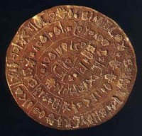 Rendelkeztek saját írással is. A legkorábbi, Evans által hieroglifikusnak elnevezett írásuk képekből állt: mindössze egyetlen emlék maradt fenn róla, a phaistosi korong.