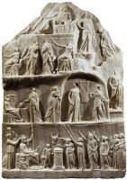 | | Homéros | A görögök ezen a néven tartották számon irodalmuk első két monumentális alkotásának, az Iliasnak és az Odysseiának a költőjét, aki a hagyomány szerint Kis-Ázsia nyugati partvidékén vagy valamelyik part menti szigeten élt, és ugyanitt halt meg. Sok minden szól amellett, hogy az Ilias a Kr.e. 8. század közepén, az Odysseia egy emberöltővel később, a század végén keletkezett. Már az alexandriai filológusok körében felmerült, hogy esetleg két különböző költő alkotásáról van szó. A két eposz minden bizonnyal egy hosszú évszázadokra visszanyúló szóbeli költői anyag elemeiből építkezik. A végleges formát nyert eposzoknak és feltételezett szóbeli forrásuknak a viszonya áll az ún. homérosi kérdés középpontjában, amelyet 1795-ben Friedrich August Wolf Prolegomena ad Homerum című műve robbantott ki. A kérdés tehát az, hogy egy (illetve két) költő művéről, vagy pedig költőnemzedékek közös alkotásáról, tehát a szóbeli epikus anyag valamiféle spontán alakulásáról van-e szó. A vita máig nincs lezárva, de lassanként felülkerekedett az a nézet, amely szerint a költemények páratlanul egységes szerkezete mögött tudatos költői alkotómunka áll. Ugyancsak az egységes, következetes szerkezet teszi valószínűvé, hogy a költő a szóbeli anyagból a görögség körében éppen ez idő tájt megjelenő írás valamilyen fokú igénybevételével alkotta meg műveit.