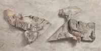 | | Ünnepi menet az actiumi Apollo alakjával, római márvány dombormű töredékei Avellinóból; korai császárkor | Az actiumi diadalnak, mint a (Rómában hivatalosan soha nem így nevezett) császárság alapító aktusának kiemelt szerepe volt, ábrázolások formájában is, az augustusi propagandában. Az uralkodó a győzelmet a később is védőisteneként tisztelt Apollo segítségének tulajdonította; az ő sziklán ülő, kezében kitharát tartó alakja, mögötte a delphii szentélyére utaló háromlábú jósszékkel, a tengeri csatára emelt tekintettel, fő alakja lehetett a kompozíciónak. A másik fő témája nyilvánvalóan egy ünnepi felvonulás volt; ennek egyik részlete az újonnan szerzett lap, rajta a négy ló által húzott kétkerekű díszkocsi, a tensa, amelynek itt templomszerűen kiképzett szekrényében az istenek jelvényeit vitték a menetben. Az ábrázolt oldalait díszítő két dombormű az Augustus forumán általa Kr. e. 2-ben fölszentelt Mars-templom körüli tér két oldalán kiemelt helyen álló szobrok ábrázolása: a hosszú oldalon Romulus alakja látható a megölt ellenséges király fegyverzetével díszített diadalmi jelvénnyel, a rövid oldalon Aeneas, aki idős apjával a vállán, fiát kézen fogva menekül el az égő Trójából, hogy rátaláljon Itália partjának arra a jóslattól jelzett pontjára, amelyen az itt hárommal szimbolizált harminc újszülött malacát védő anyaállat jelenléte jelöli meg neki a helyet, ahol Laviniumot, Róma ősét megalapítja. A két szobrot, a családját Venustól eredeztető Augustus és a Romulustól alapított Róma isteni származásának jelképeit (Aeneas Venustól, Romulus Marstól származott), máshol és más műfajokban is ábrázolták, mint a Róma mitikus múltját hirdető augustusi propaganda fő szereplőit. A relief jelenetének folytatásán (l. a rekonstrukciós rajzot) a kocsit a megszemélyesített Becsület (Honos) és Hősi Erény (Virtus) vezeti.