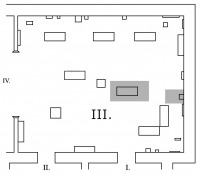 Kizárólag Apuliában készültek a tárlóval szemközt a fal előtt magában kiállított lutrophoros példányai. Görög típusa már ismert a II. terem márvány sírtábla-töredékéről és ugyanott a 2. tárló pyxiséről. Ezt a hengeres testű apuliai változatot, amelynek hétköznapi használatát fém-utánzó fülének formája is lehetetlenné tette, gyakran monumentális mitológiai kompozíciókkal díszítették; a század utolsó harmadában készült budapesti példány díszítetlen volt, de alja a festettekhez hasonlóan nyitott, mert az volt a rendeltetésük, hogy a fölül betöltött italáldozat az edénytesten át eljusson a halotthoz, akinek sírja fölött állt.