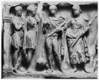 | A kalydóni vadászatot ábrázoló Róma-városi szarkofág hosszanti oldalának részlete. G. Koch, Die mythologischen Sarkophage. Teil 6: Meleager. Berlin 1975, 1. t., 1. k. | A Metamorphosesben egy hosszabb, narrációs szempontból igen összetett részlet foglalkozik Meleagrosszal, amely a VIII. könyv 260 sorától az 546-ig tart. A calydoniai vadkanvadászaton Meleagros beleszeret Atalantába, és neki akarja adni a trófeát. Nagybátyjai azonban ebben megakadályozzák, ezért megöli őket. Anyja viszont bosszúból tűzre veti a varázslatos fahasábot, amelynek elhamvadásával Meleagros is elpusztul. A történetmondás előtte Theseus és Aegeus találkozásától (VII.404-452) kalandozott el Minos és Daedalus - és közéjük ékelve Cephalus - történetei felé (eközben csak mellékesen utalva Theseus és Ariadne esetére (VIII.172-176)), hogy aztán Daedalustól látszólag visszatérjen Theseushoz: Daedalus már Szicíliában volt, amikor Theseus híre olyannyira elterjedt, hogy a vadkan pusztítása ellen Calydon az ő segítségét kérte, "holott a rendelkezésére állt Meleagros". Ezt a szembeállítást aztán az ovidiusi mesélés játékosan kiforgatja: Theseusról alig hallunk a következő események során. ő mindössze visszatartja Pirithoust, majd a vadkan helyett egy faágat talál el gerelyével (VIII.405-410). Meleagros lesz a főszereplő. De az ő halála után majd azzal folytatódik az eposz, hogy Theseus hazaindul Athénba Calydonból. Nem mintha hallanánk arról, hogy megérkezik oda, csak arról értesülünk, hogy útközben vendégeskedik a megáradt Achelous folyónál, és az asztal mellett mindenféle átváltozás-történeteket mesélnek egymásnak. Több könyvön át tartanak tehát azok a történetek, amelyeket Theseus alakja kapcsol össze, de amelyekben ő maga alig játszik szerepet, és az összekapcsolás inkább csak irónikusan eljátszik a nagyepika folyamatosságának konvenciójával. Az átváltozás ezúttal csak mellékesen kapcsolódik az elbeszéléshez. Sem a calydoniai vadkanvadászat epikus története, sem Meleagros anyjának drámai vívódása nem tartalmaz átváltozás-motívumot. Meleagros húgai gyászukban változnak afrikai gyöngytyúkká (VIII.536-546), és ez a rövid, mindössze 11 soros epizód kódaként zárja le az hosszabb narratív részletet. Az átváltozás külsődlegesen és motiválatlanul kapcsolódik a történethez, mintegy játékosan téve eleget a mű maga teremtette konvenciójának. Ha az egész részlet alig tesz eleget mindannak, amit ígér (hogy Theseus-, illetve átváltozás-történetet fog előadni), az sem meglepő, hogy olyasmi kerül a középpontjába, amit viszont aligha várnánk: a női szerepek kérdése. Meleagros első látásra beleszeret Atalantába, de a pillanat és valamelyikük feszélyezettsége (tempusque pudorque - VIII.327) nem teszi lehetővé az udvarlást: anélkül kezdődik el a vadászat, hogy egyáltalán megszólítaná a lányt. A szerelem beszédét ez a történet elnémítja. Hiszen Atalanta vadászként, egy férfiszerepben jelenik meg. És Meleagros elfogadja Atalantát ebben a szerepben: a vadászként nyújtott teljesítményéért dicséri (VIII.387) és ajándékozza meg (VIII.426-7). Nem úgy a többiek, akik szégyenkeznek amiatt, hogy egy nő sebezte meg először a vadkant (VIII.388), és akik mind irigykednek és morgolódnak, amikor megkapja a trófeát. A Thestiadák pedig éppen egy női szerepbe és egy kizárólag szerelmi történetbe kényszerítenék vissza, és utólag kizárnák a vadászok közül: a "nec titulos intercipe, femina, nostros" kifejezés (VIII.432) éles határt húz a mi egyfelől, és másfelől a nő között, akinek megajándékozását csak szépségével és az ajándékozó szerelmével magyarázzák. Atalanta azonban sem itt, sem máshol nem szólal meg. Annyira azért nem tör férfiszerepre, hogy a vadászaton kívül is annak megfelelően cselekedjen. Nem ő harcol a trófeáért, hanem Meleagros az ajándékozás jogáért. A többi nő szerepe viszont arra korlátozódik, hogy a sikeres vadászat után hálaáldozatot mutasson be (VIII.445), vagy hogy a hős halálát meggyászolja. Althaea egészen különleges helyzetben találja magát, amikor oka és eszköze is lesz, hogy elpusztítsa a fiát. ő lesz az a nőalak itt, aki hosszú belső küzdelem után döntést hoz, és azt végre is hajtja, mert úgy találja, anyaként rendelkezhet gyermeke életével. Utána pedig megöli magát (VIII.531-2).