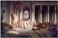 Iulius Caesar Kr.e. 100-44.A leghíresebb római hadvezér. Kr.e. 73-ban kezdte meg Rómában politikai pályafutását, mérhetetlen politikai ambíciói voltak. Kr.e. 63-ban megválasztatta magát pontifex maximusszá, ami élethosszig tartó tekintélyes főpapi tisztség volt. Óriási adósságokba verte magát, hogy fényes játékok rendezésével nyerje meg a választókat. Pénzzavarából a milliomos Crassus és hispániai helytartósága segítette ki. Kr.e. 60-ban elérte, hogy consullá válasszák, ami a legfőbb tisztség volt. Még mielőtt hivatalba lépett volna, kibékítette egymással Róma két leghatalmasabb emberét, Pompeiust és Crassust, és titkos szövetségre lépett velük (1. triumvirátus) - annak érdekében, hogy semmi ne történhessék hármójuk akarata ellenére. Consulsága alatt megvalósította Pompeius követeléseit, s földet osztott, Crassusnak az adóbérlők kötelezettségeinek könnyítésével kedvezett, önmagának pedig megszerezte Gallia helytartóságát. Ez jelentős katonai hatalommal ruházta fel őt, amit később, további évekre meghosszabbítva teljes Gallia meghódítására használt fel: Kr.e. 58 és 51 között vezetett hadjáratai során a birodalomhoz csatolta Galliát. Vö. Római hadviselés.