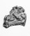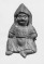 Csuklyás ruhájú ülő gyermek szobrocskája