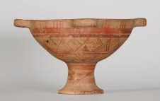 | Mi ez? | Geometrikus díszítésű talpas csésze (kylix) | | Hol készült? | Boiótia | | Mikor készült? | Kr.e. 6.sz. első fele | | Miből készült? | égetett agyag | | Hol található? | Szépművészeti Múzeum, Antik Gyűjtemény | | Méret: | m: 14,7 cm; átm: 21,3 cm (a fülek nélkül) | | Állapot: | Ragasztott, a lábon kiegészítés. | | Leltári szám: | T.721 |