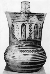 | | Hol készült? | Attika | | Mikor készült? | Kr.e. 8. század közepe | | Miből készült? | Égetett agyag | | Hol található? | Szépművészeti Múzeum, Antik Gyűjtemény | | Méret: | m: 21,1 cm. | | Állapot: | Több darabból ragasztva, az edény felső részén két kiegészítéssel.