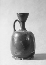 A vázaformát talpgyűrűn álló ovoid test és profillal elváló nyak jellemzi. A talpat kivéve az egész edényt fekete máz fedi. Elöl talajvonalon balra lépő, felsőtestével hátraforduló ruhátlan szárnyas ifjú, feltehetően Erós látható, mögötte kerek tárgy.