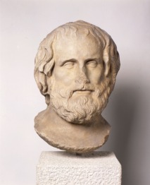 Euripidés fő portrétípusának, az ún. Farnese-változatnak egyik jó példánya. Eredetijét Lykurgos állíttatta föl Kr.e. 330 körül az athéni Dionysos-színházban. A kompozíció a tragikus triászt ábrázolta: Aischylos és Sophoklés állt, Euripidés ült. A mű egy feltevés szerint a késő-klasszikus kor legnagyobb szobrászának, Lysipposnak az alkotása lehetett.