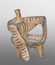 Háromlábú, áttört támlájú trónszéken ülő nőalak. A trónus és a figura sötét sávokkal festett. Általában istennő ábrázolásának vélik, de elvben más értelmezés (pl. gyermekjáték) is elképzelhető.