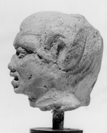 | | Hol készült? | Egyiptom | | Miből készült? | terrakotta | | Hol található? | Szépművészeti Múzeum, Antik Gyűjtemény | | Méret: | m: 3,8 cm | | Állapot: | Nyaknál letörve, az orr és az ajak sérült.