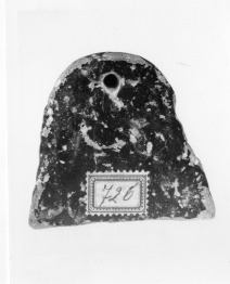 A feltehetően női arcot ábrázoló terrakottának csak az elülső oldalát mintázták meg formából. A fej tetején kifúrt lyuk arra utal, hogy a fejet zsinórra fűzve, talán a falra felakasztva helyezték el rendeltetési helyére. A hosszú, vállig érő parókaviselet háromszögként keretezi az arcot, amely szintén csúcsára állított háromszöget formáz. A parókát fedő sötét színű festés nagyon jó állapotban maradt meg. A terrakotta fej Lakóniából származik, állítólagos lelőhelye az egyik legfontosabb és legősibb lakón szentély, a spártai Amyklaion. A kis terrakotta fej az archaikus kor korai, ún. orientalizáló korszakában készült. A keleti motívumokat teljes egészében átvevő és a görög igények szerinti műfajokba átültető művészi nyelvet daedalikusnak is szokták nevezni, a görög mitológia híres ezermester művész-alakjáról, Daidalosról. Ennek a stílusnak egyik legszembetűnőbb jellemzője a keleti típusú, hosszú, vízszintes barázdákkal tagolt, tömött, hullámos paróka megjelenése a szobrokon és a kisplasztikában. |