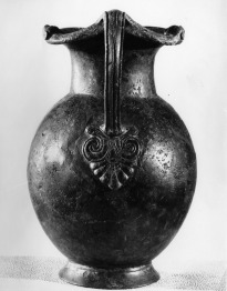 Bronz oinochoé, fülén alul két voluta között palmetta látható, a száj fölött két oldalt majom-, középen oroszlánfej. A fül és a talp külön készültek. 1868-ban egy aukción vásárolta meg Ráth György, de 1891-ben már Londonban árverezték el. Új tulajdonosa Alfred A. de Pass angol műgyűjtő lett. Az oinochoé 1925-ben került a Szépművészeti Múzeum tulajdonába egy régiségkereskedő révén. |