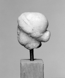 Ez az alabástromszobor szélescsontú, pufók női arcot mintáz. Haját középen elválasztották, a homlokon felcsavarva széles fonatban hátrasímították, és a tarkón kontyban összefogták. A hajfonat fölött diadémot visel. Az orrnyílásokat és a száj két sarkát befúrásokkal jelezték. A frizura és az arc megmunkálása alapján a szobrocska a római korban készült.