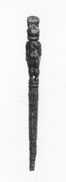 Etruszk bronz íróvessző (stylus) a tetején álló ruhátlan ifjúalakkal. A szára bordázott, vízszintes gyűrűkkel van tagolva. Feltehetően vulcii műhelyben készült.
