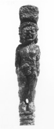 Etruszk bronz íróvessző (stylus) a tetején álló ruhátlan ifjúalakkal. A szára bordázott, vízszintes gyűrűkkel van tagolva. Feltehetően vulcii műhelyben készült.