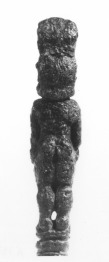 Etruszk bronz íróvessző (stylus) a tetején álló ruhátlan ifjúalakkal. A szára bordázott, vízszintes gyűrűkkel van tagolva. Feltehetően vulcii műhelyben készült.