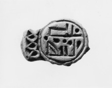 Zöldessárga agyagból kézzel formált kis pecsétlő, hátoldalán szalagfül nyomával. Előoldalán levélsor látható, közepén körrel, benne geometrikus mintákkal. Az egyiptomi keresztények az oltáriszentség kenyerét a kereszt jelével, állatalakokkal vagy mértani motívumokkal díszített, agyagból, kőből vagy fából készült kenyér-pecsételőkkel pecsételték le.