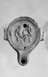 | | Mikor készült? | 1. század első fele | | Miből készült? | égetett agyag | | Hol találták? | Italia | | Hol található? | Szépművészeti Múzeum, Antik Gyűjtemény | | Méret: | m: 2,6 cm. h: 9,6 cm | | Állapot: | Ép. A kanócnyílás környékén égésnyomok.