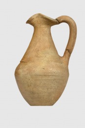 Talpatlan, kettős kúp alakú test, azon reliefvonallal elváló, hosszú, konikus nyak; erősen benyomott kiöntő; hátul vastag rúd-fül; az edény alja konkáv, közepén kiemelkedő korong. Durva, mázatlan, korongolt. Hopp Ferenc ajándéka a MNM-nak (1897), ahol a Néprajzi Tárba került. A Néprajzi Múzeum (Országos Történeti Múzeum) átadása (1950). |