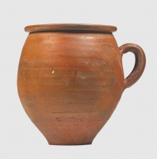 Alul elkeskenyedő széles, öblös test, ami nyak nélkül, kissé összeszűkülve keskeny, kihajló szájperemben végződik. Az alj sima. Középen kis, függőleges szalagfül. Az edény belsejében korongolási barázdák. Mázatlan. Hellénisztikus pún típus. Hopp Ferenc ajándéka a MNM-nak (1897), ahol a Néprajzi Tárba került. A Néprajzi Múzeum (Országos Történeti Múzeum) átadása (1948). |