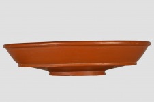 Alacsony talpgyűrű, lapos tál, a pereme belül barázdált, kiszélesedik. Belsejében benyomott bélyeg. Kívül-belül sárgásvörös bevonat fedi. A legkorábbi afrikai terra sigillata-produkcióba tartozik. Hopp Ferenc ajándéka a MNM-nak (1897), ahol a Néprajzi Tárba került. A Néprajzi Múzeum (Országos Történeti Múzeum) átadása (1948). |