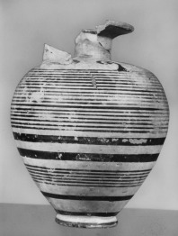 | | Hol készült? | Korinthos | | Mikor készült? | 670-665 | | Miből készült? | Égetett agyag | | Hol található? | Szépművészeti Múzeum, Antik Gyűjtemény | | Méret: | m: 11,4 cm; talp átm: 3,7 cm. | | Állapot: | A fül és a szájperem nagy része kiegészítés, a nyak több darabból ragasztva. A festés helyenként lekopott.