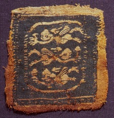 A beleszőtt díszt az ókorban vágták ki a tunikából és rávarrták egy másikra, amelyet megjavítottak mielőtt temetéskor használták. Három úszó Erós alkotja a dekorációt.