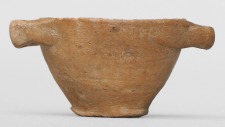 Kónikus (kúp-alakú) testű, viszonylag durván formált, két, oldalra kiálló szallagfüllel. Festés nyomai nem látszanak. |