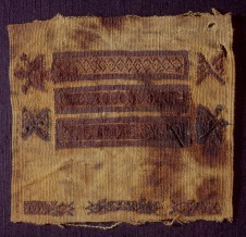 | Mi ez? | Tunikaujj (?) darabja | | Hol készült? | Egyiptom | | Mikor készült? | 11-12. sz. | | Miből készült? | textil (len, gyapjú) | | Hol található? | Szépművészeti Múzeum, Antik Gyűjtemény | | Méret: | 14x14,8 cm | | Állapot: | Foltos. | | Leltári szám: | 93.4.A | | Irodalomjegyzék: | A Szépművészeti Múzeum Közleményei, Budapest 2000. 94 (2001), Sipos, 77-82, 163-165.