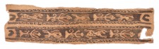 Tunika-részlet kettős szalag-dísszel; a szalagokban futó foltos vadállat és jobbra néző állat-féle (hal?), fával elválasztva. A szalagok két szélén fél-spirálisok sora, végükön félkör alkú lezárás. Sárga, barna és vörös színekkel készült. A természet formáinak egyszerű formákká való alakulásának folyamatát illusztrálja ez a darab. A hagyományos nílusi táj,amely a későantik és korabizánci kor világi és vallási reprezentációjának fontos témája volt, kiragadott jellegzetes elemek repetitív listájává vált. Azt a folyamatot a kopt művészetben, amelyben a természeti formákat ornamenssé stilizálták, az egyszerű formák hagyománya készítette elő és az iszlám művészet bátorította.