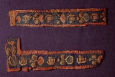 | Mi ez? | Tunikadísz | | Hol készült? | Egyiptom | | Mikor készült? | 5-6. sz. | | Miből készült? | textil (len, gyapjú) | | Hol található? | Szépművészeti Múzeum, Antik Gyűjtemény | | Méret: | m: 19 cm; sz: 9,5 cm (együtt!) | | Állapot: | Két külön darab, de nyilván ugyanabből a szalagból. A széleken hiányok, felületén kopás. Vörös, fekete, zöld és sárga szín. | | Leltári szám: | 2000.21.A |
