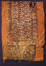 | Mi ez? | Tunikadísz alsó vége | | Hol készült? | Egyiptom | | Mikor készült? | 11-12. sz. | | Miből készült? | textil (len, gyapjú) | | Hol található? | Szépművészeti Múzeum, Antik Gyűjtemény | | Méret: | 24,5x18,2 cm | | Állapot: | Részlet, szélein kis hiányokkal. Barnásvörös szegélyben barna, sárgásfehér és a madarakon talán zöld színnel. | | Leltári szám: | 97.29.A |