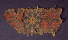 Tunikadísz, amelynek közepén négyzetben rombuszból kinyúló négy kereszt és négy fa, két oldalán pedig meandertől elválasztott két sávban növénydísz látható. Sárga, fekete, vörös és zöld színnel készült.