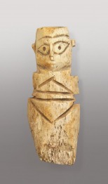 Sárgás színű csontból faragott, ruhátlan nőalak. Bekarcolással jelezték a szemöldököt, a szemet, a mellet, a hasredőket és az ágyékot. A vállakba lyukakat fúrtak, amelyek a mára elveszett karok beillesztésére szolgáltak. A szobrocskát csak elöl mintázták meg. Az ilyen típusú faragványok a terrakotta áldozati- és amulett-szobrocskák utódai, amelyeket a házassággal, termékenységgel, gyerekszüléssel kapcsolatosan hívtak segítségül.