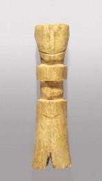 Sárgás színű csontból faragott idol, amelynek testét és fejét elnagyoltan formálták. Nyomokban látszik, hogy a nőalak szemét festéssel jelölték. Ezek a faragványok a terrakotta áldozati- és amulett-szobrocskák utódai, amelyeket a házassággal, termékenységgel és gyerekszüléssel kapcsolatban hívták segítségül.