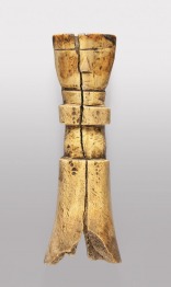 Barnássárga színű, faragott, elnagyoltan megformált testű és fejű csontfigura, bizonyára nőalak. Szemét festéssel jelölték. Az ilyen típusú faragványok a terrakotta áldozati- és amulett-szobrocskák utódai, amelyeket a házassággal, termékenységgel és gyerekszüléssel kapcsolatosan hívtak segítségül.