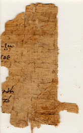 recto oldalán egy régebbi, lemosott szöveg fölött egy columna jobb oldalának része látható: két teljes sor és két sor vége.