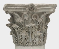 Az oszlopfőt két alsó akanthus-levélsor fölött akanthus-kehelyből kinövő voluta-párok díszítik. A konkáv abacus-lapot közepén kiugró él tagolja, középen rozetta emelkedik ki. |