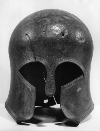 Állapot:A jobb oldali szemrész fölött hosszú repedés, a sisakfalon hátul nagyobb repedés és hiány. Elöl horpadás.