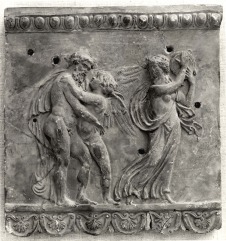 | Mi ez? | Campana-relief | | Hol találták? | Itália | | Hol található? | Szépművészeti Múzeum, Antik Gyűjtemény | | Méret: | m: 46, 5 cm; sz: 44 cm | | Állapot: | Ép, több darabból levés kiegészítéssel összeállítva. A rögzítésre szolgáló átfúrt lyukakkal.