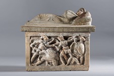 Mi ez?Etruszk hamvurna ekével harcoló hérós ábrázolásával